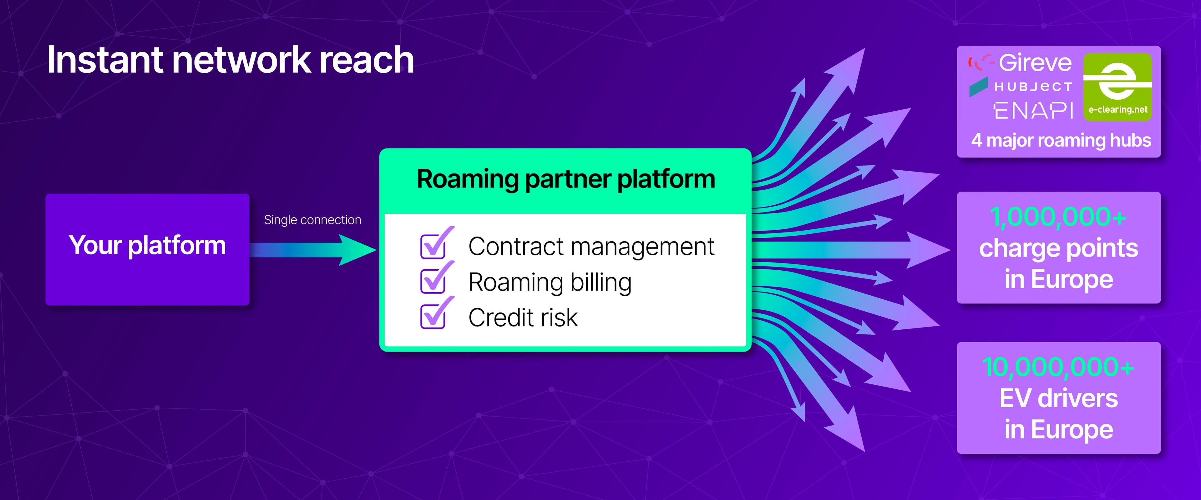 Europe’s roaming landscape is split between Hubject, Gireve, e-clearing, and Enapi – each with its own fees, quirks, and protocol flavours. In addition, most platforms include direct OCPI connections to other partners. On paper it all looks standardised; in real life, every hub behaves a little differently. And because none of them give you full coverage, you end up juggling multiple contracts, multiple integrations, and multiple points of failure, creating an operational burden you need to be fully prepared for. And even if you think you are, you probably are not.